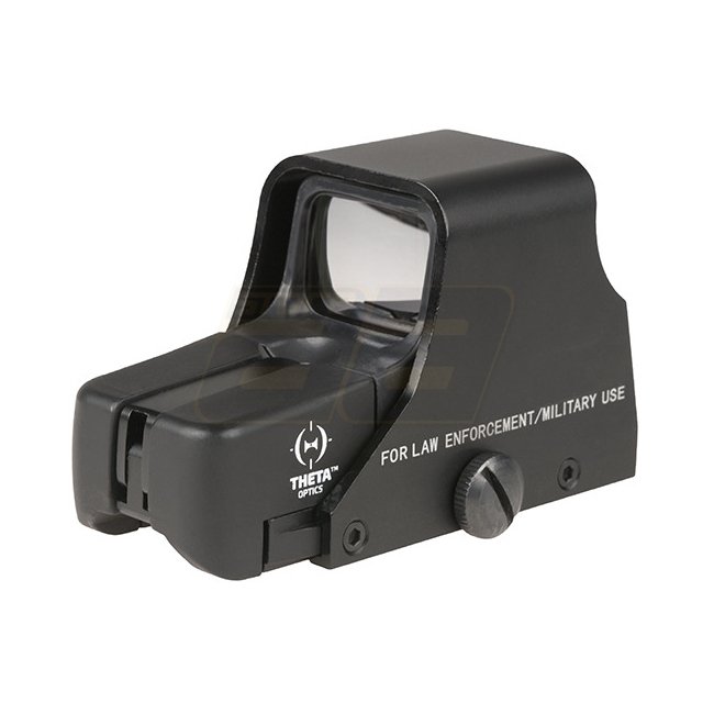 Das Theta Optics TO551 Red Dot Sight in Schwarz ist ein vielseitiges und zuverlässiges Optik mit 1x Vergrößerung, roten und grünen Beleuchtungsoptionen sowie einem Kreis-Punkt-Absehen. Es umfasst Wind- und Höhenverstellungen, benötigt 4x LR44 Batterien un