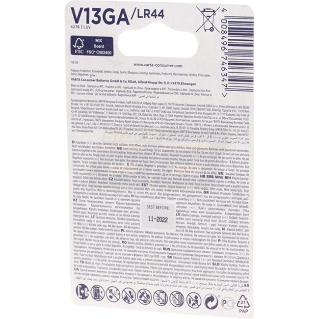 Varta LR44 / V13GA 2 Stück - Zuverlässig und langlebig, diese Varta LR44 Batterien sind perfekt für Uhren, Taschenrechner und kleine elektronische Geräte. Holen Sie sich ein 2er-Pack, um immer einen Ersatz zur Hand zu haben.