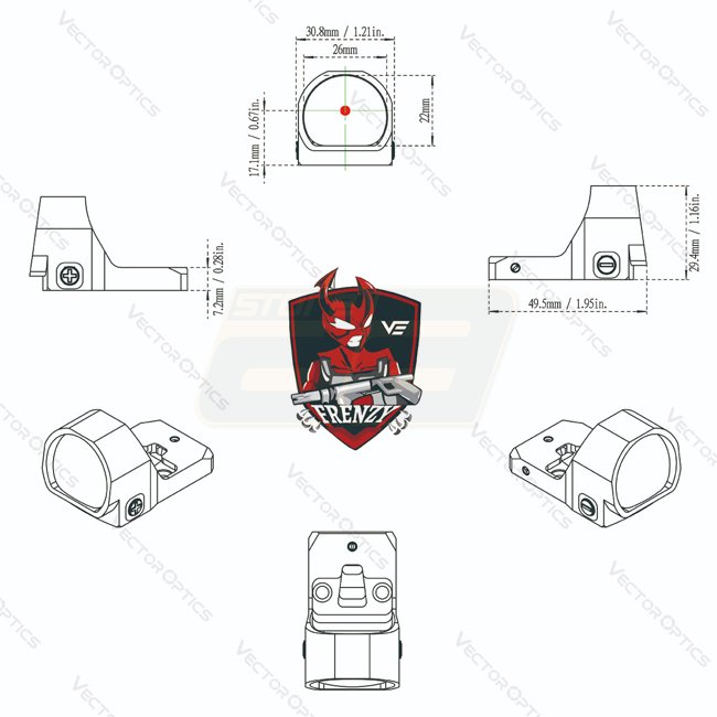 Vector Optics Frenzy-X 1x22x26 3 MOA Red Dot - Schwarz, 1-fache Vergrößerung, unbegrenzter Augenabstand, 8 Helligkeitsstufen, 45 MOA Einstellung, CR2032 Batterie.
