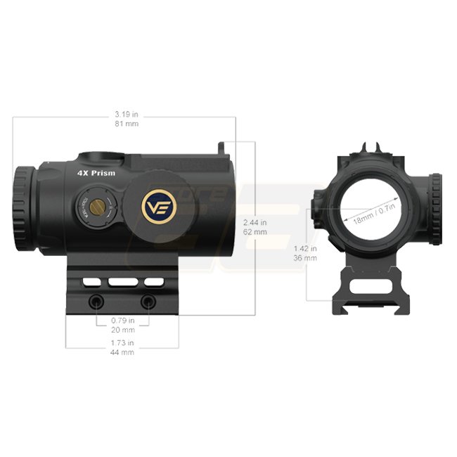 Kompakt und präzise, das Vector Optics Paragon 4x24 Micro Prism Zielfernrohr bietet eine 4-fache Vergrößerung und ein 24mm Objektiv. Es verfügt über ein VEPS-MBR geätztes Glasabsehen, 1 MOA Verstellgenauigkeit, 10 Helligkeitsstufen und ein rot beleuchtete