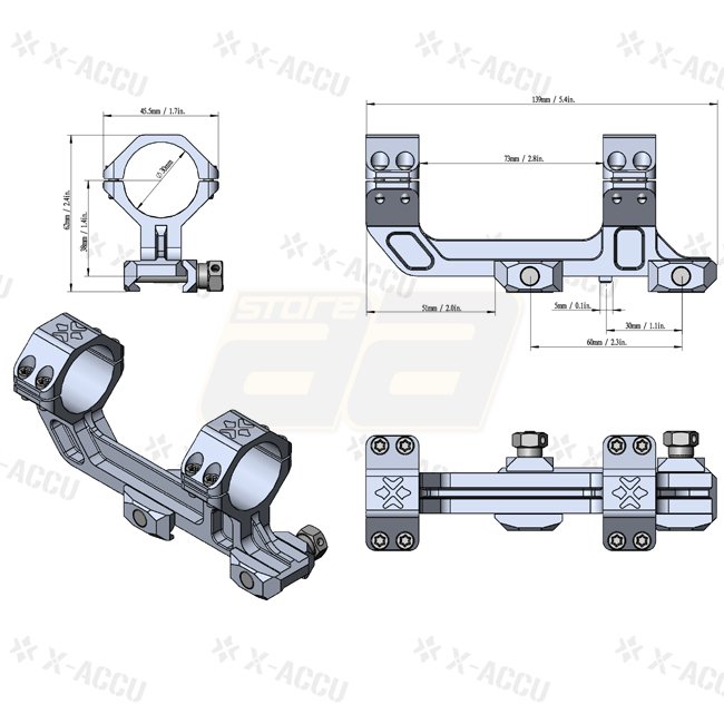 Höhe: 38mm / 1.5“ (Oberkante Schiene bis Mitte Optik)
