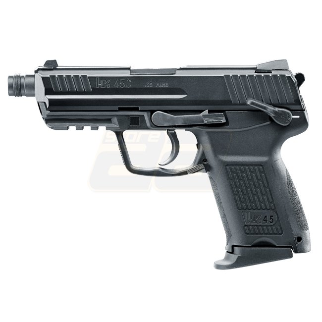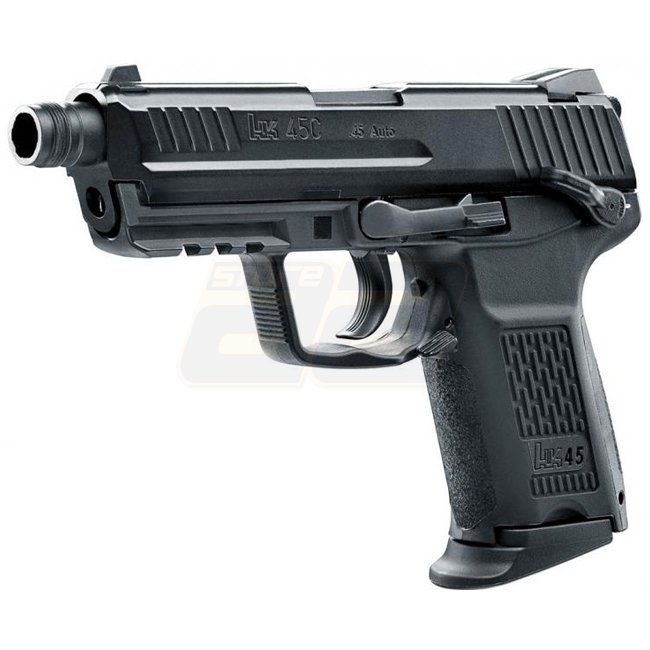 Die HK45 ist die Pistole mit dem stärksten Kaliber im Programm von Heckler & Koch. Die Airsoft-Version mit dem Kürzel CT verfügt über zahlreiche ungewöhnliche Details, etwa einen mit Schalldämpfergewinde versehenen Lauf, eine Picatinny-Schiene, Magazinhebel im Abzugsbügel und eine manuelle Sicherung. Der Metallschlitten und der Blowback-Effekt verleihen der knapp 800 Gramm schweren Pistole eine hohe Authentizität.