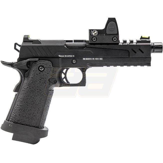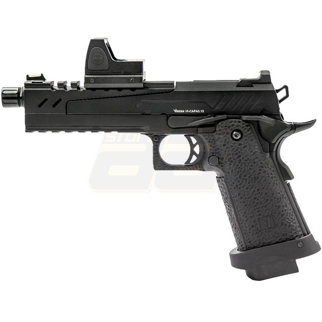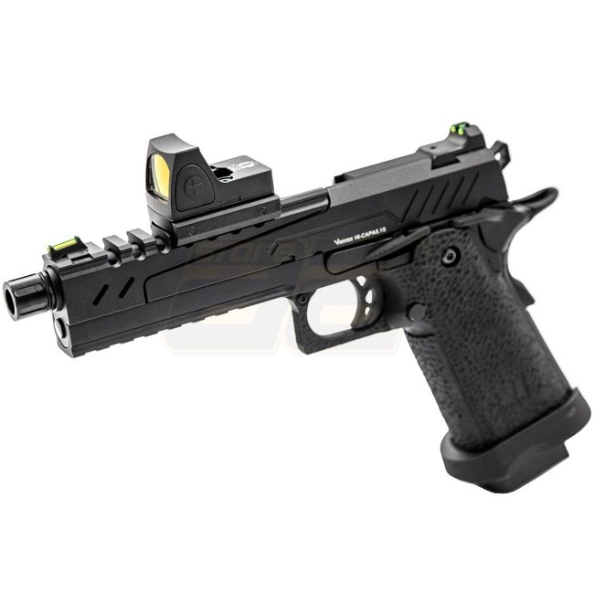 Vorsk Hi-Capa 5.1 Split Slide BDS Blow Back Pistole - Schwarz. Metall/Polymer, 21 Schuss Magazin, 240mm Länge, 980g Gewicht, 115mm Lauf, 330-350 FPS. Halbauto, 45.27-48.02m Reichweite, verstellbarer Hop-Up. Paket: Waffe, Magazin, Rotpunktvisier.