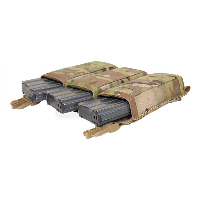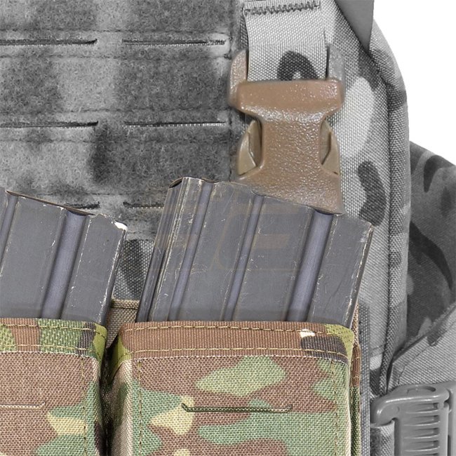 Abnehmbare Fronttasche, die für drei 5,56 mm Magazine entworfen wurde. Sichert Magazine sicher mit thermoplastischen Einsätzen für schnelle, dynamische Nachladungen.