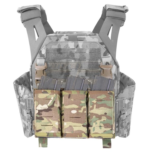 Warrior Laser Cut Detachable Front Panel Triple Snap Mag Pouch - Multicam