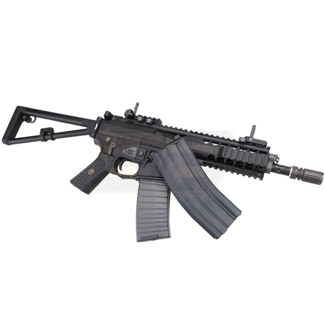 Beim Original handelt es sich um ein Experiment der Firma Knight’s Armament Company wobei ein neues 6mm Kaliber zur Anwendung kommt. Das Ziel dabei ist es, ein Gewehr zu schaffen welches weniger für den offensiven Einsatz gedacht ist sondern vielmehr für motorisierte Kräfte wie etwa Lastwagenfahrer oder Panzerbesatzungen. Entsprechend sollte das Projektil auch nur defensiv auf mittlere Distanzen wirkungsvoll sein. Damit die KAC PDW zur bestehenden M-Serie passt sind die Magazine kompatibel und die Funktionen weitestgehend deckungsgleich.