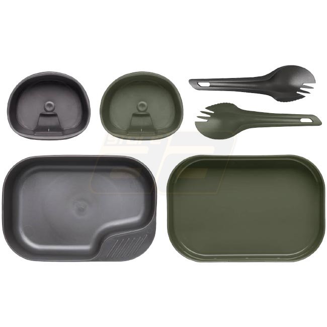 Kompaktes und leichtes Essgeschirr. Die einzigartige Materialwahl macht die Camp-A-Box funktional und widerstandsfähig. Set für zwei Personen. Beinhaltet einen Teller mit Deckel, 2x Fold-A-Cup, 2x Wildo Spork.