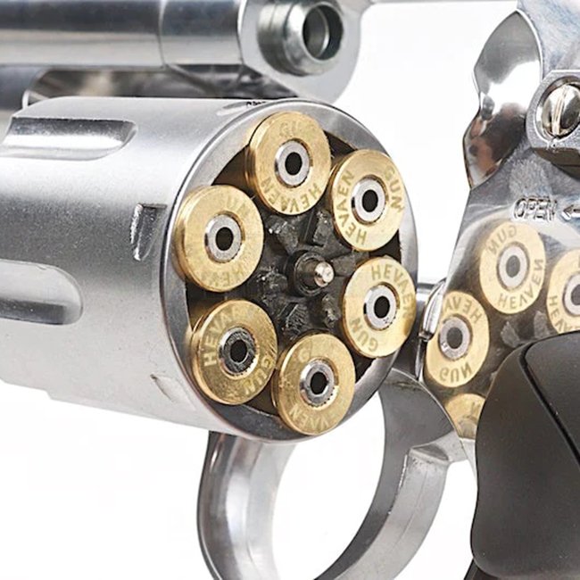 Klassisches Design trifft auf moderne Funktionalität mit dem WinGun Revolver Co2 708. Mit einem eleganten schwarzen Griff und silbernem Finish bietet dieser Revolver eine Magazinekapazität von 6 (6mm) Patronen und eine Schussreichweite von 43,90-46,65 m.