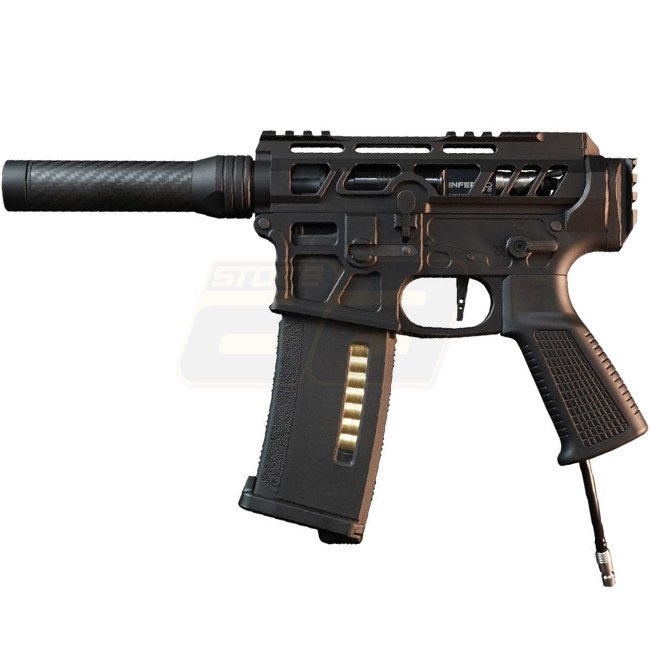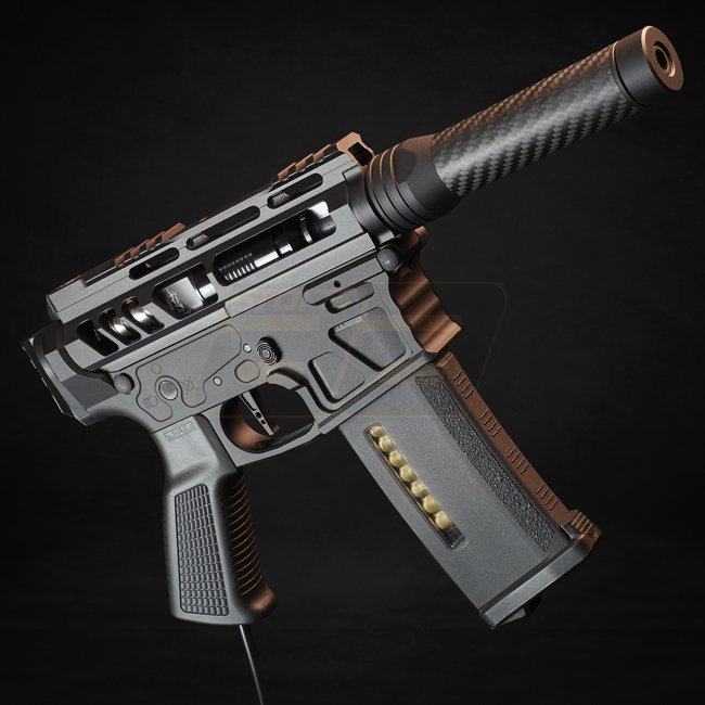 Der Heretic Labs Artikel 1 ist eine speziell entwickelte HPA-Speedsoft-Airsoftwaffe, die für Spieler konzipiert wurde, die außergewöhnliche Leistung und Agilität suchen. Sein skelettierter MTW-spezifischer CNC-gefräster Billet-Aluminium-Receiver und der echte Carbonfaser-Außenlauf tragen zu einem Gesamtgewicht von nur 0.95 kg bei, was eine schnelle Manövrierfähigkeit auf dem Spielfeld gewährleistet.