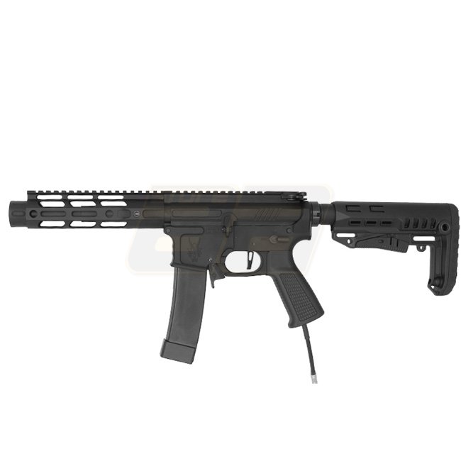 Die Wolverine MTW-9 INFERNO Modular Training Weapon TAC 7 Zoll ist eine erstklassige Airsoft-Waffe, die für intensive Kämpfe entwickelt wurde. Hergestellt aus strapazierfähigem Metall, bietet sie eine Magazin kapazität von 75 Schuss (6 mm). Mit einem eins