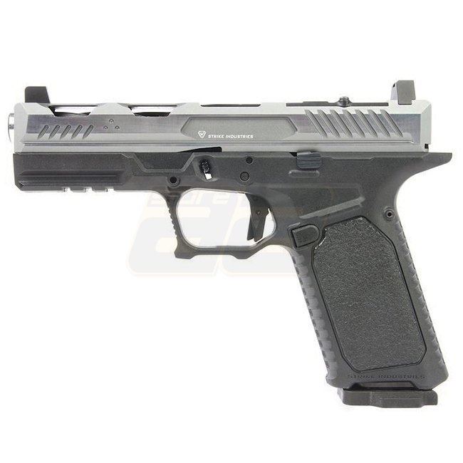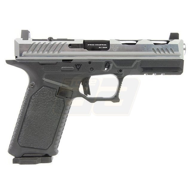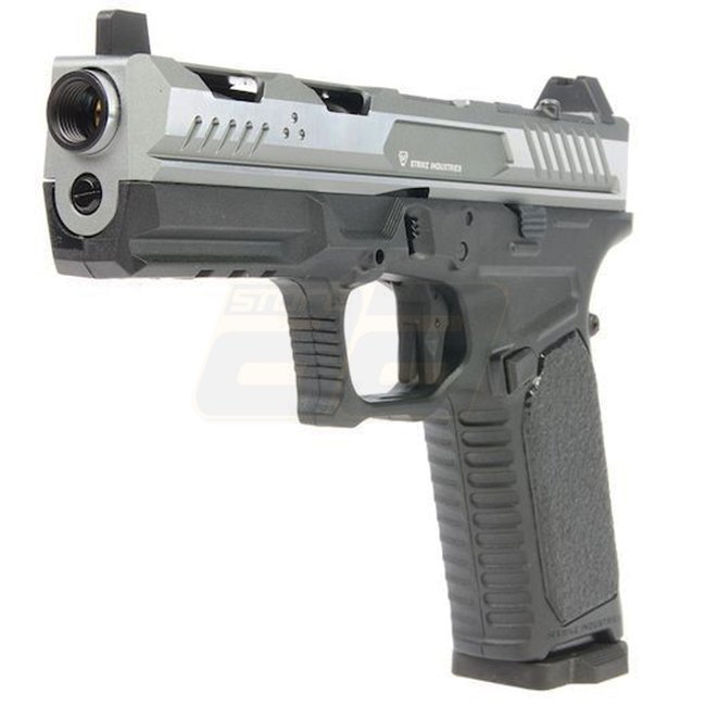 EMG Strike Industries ARK17 Gas Blow Back Pistol - Grey: Metal / Polymer, 25rd Magazine, 200mm Length, 740g Weight, 97mm Inner barrel, 330-350 FPS, Semi Auto, 45.27-48.02m Shooting Range, Adjustable Hop Up