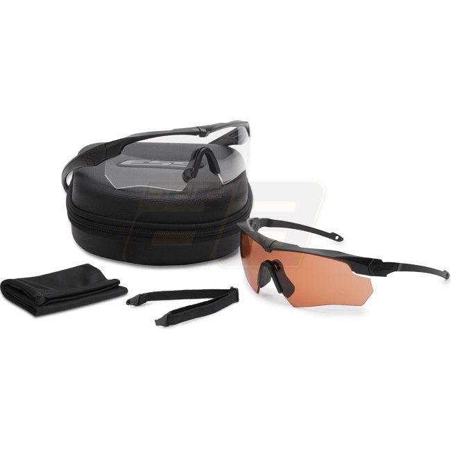 The ESS Crossbow Suppressor is the first spectacle frame designed for use with ear cup hearing protection and communications devices. Featuring Z-Bend Geometry, the frame's ultra-thin temple arms help keep noise out by minimizing the effect on the padded seal of ear cups. The slim temples eliminate the hot spots and pressure points that commonly occur when normal eyewear is worn under ear cups.