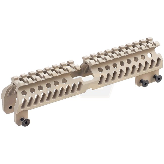 Longueur: 195mm Matériau: Aluminium Poids: 134g Système: Picatinny Compatibilité: Modèles AK (sauf PP-19 et AKS74U) des fabricants LCT et GHK Le 5KU B30 Lower Handguard est requis pour l'assemblage