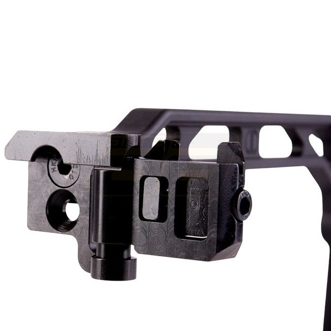 5KU SS-8RP Crosse Squelette & Adaptateur de Rail 20mm - Noir : Construction en Aluminium/Acier, compatible avec le rail Picatinny, crosse pliante, conçue pour les AEG SIG AIR MCX & MPX.