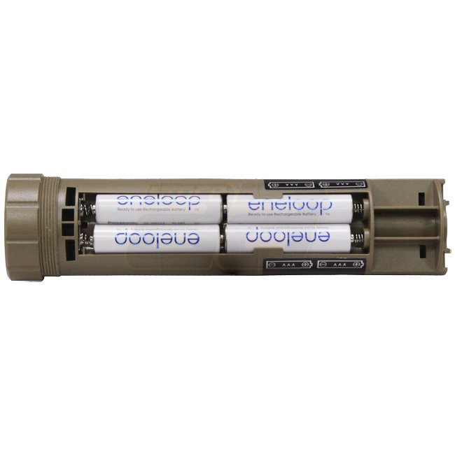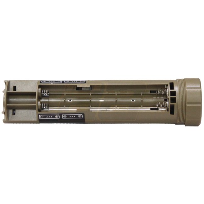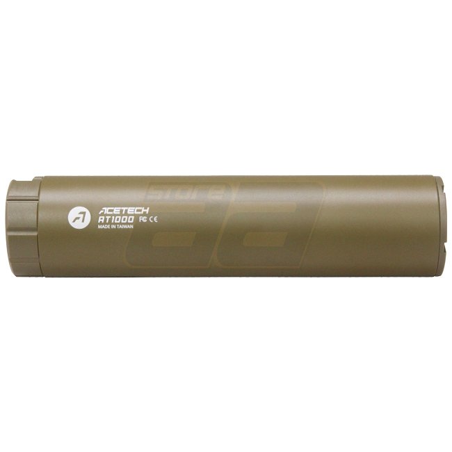 Unité de traçage ACETech AT1000 compacte en couleur Tan. Filetage 14mm CCW, alimentée par 4 piles AAA (non incluses), avec une longueur totale de 156mm, un diamètre de 37mm et un poids de 140g (sans piles).