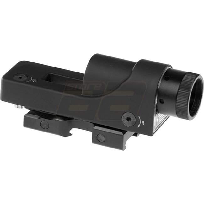 Le viseur Reflex Aim-O 1x24 en noir offre un design détaillé, robuste et magnifiquement fini. Il est doté d'un réticule à triangle à luminosité réglable automatiquement alimenté par des piles, le rendant inadapté aux pièces sombres. Le viseur comprend un