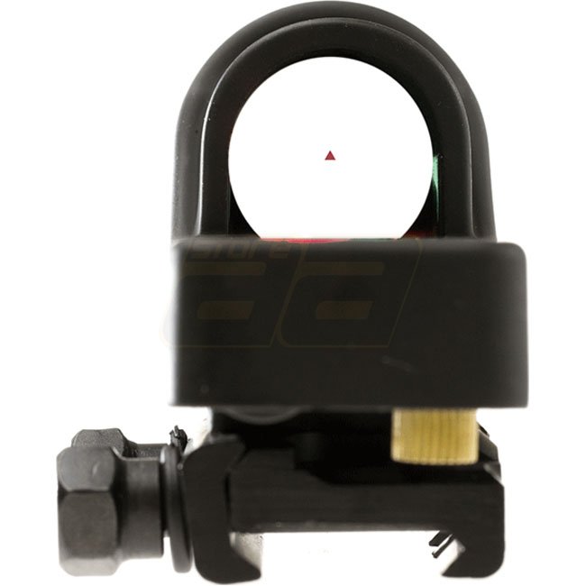 Le Reflex Sight de Aim-O est détaillé, solide et beau. La luminosité du réticule en forme de triangle est automatiquement ajustée. Contrairement à l'original, le réticule est allumé grâce à des batteries plutôt que la fibre optique ou le tritium. Le réticule s'éteint automatiquement quand il fait sombre, le Reflex Sight n'est donc pas pour les pièces sombres ou la nuit. Le filtre polarisant réglables peuvent être retirés si nécessaire.