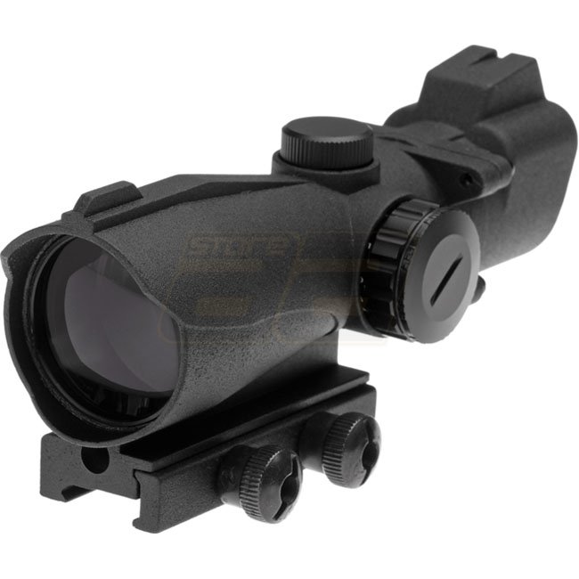 Aim-O 2x42 Point Rouge/Vert - Noir : 1x de grossissement, diamètre de lentille de 42 mm, éclairage rouge et vert, réticule point, réglable en dérive et en élévation.