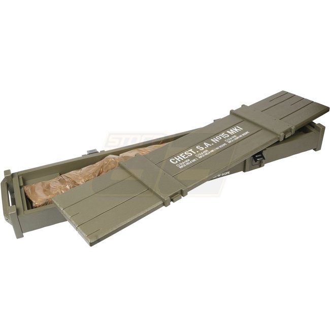 L'ARES Lee Enfield NO 4 MK1 est une réplique fidèle de ce fusil. Non seulement les pièces métalliques du pistolet sont à 95% en acier inoxydable, mais il a également une très belle crosse en bois de haute qualité qui lui donne une sensation très robuste. Tout comme le vrai fusil en acier, l'ARES Lee Enfield NO 4 MK1 présente également une action douce, ce pour quoi ce modèle était bien connu.