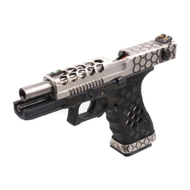 La VX0200 de la série VX d'Armorer Works est un pistolet airsoft haut de gamme conçu pour les utilisateurs compétitifs et récréatifs. Son glissière HEX-cut réduit considérablement le poids tout en offrant une prise agressive et sécurisée, parfaite pour un tir précis.