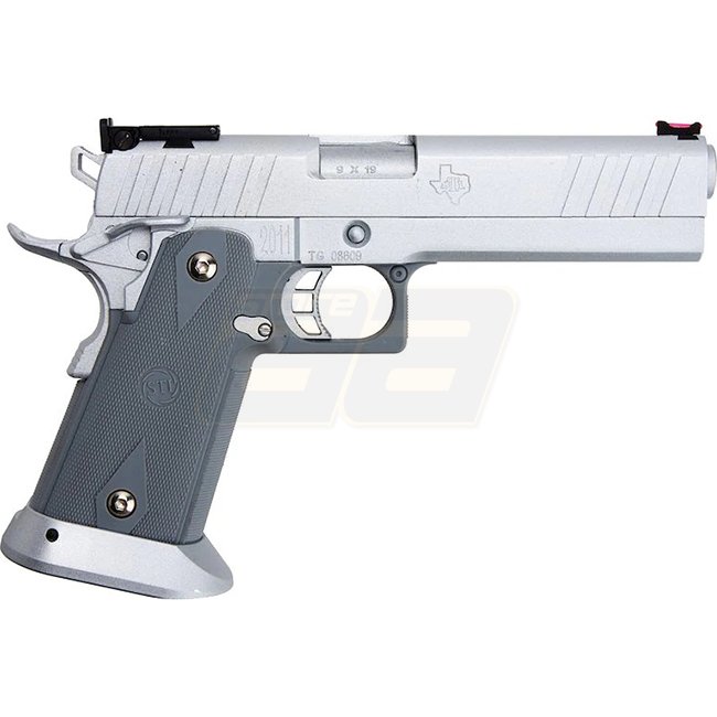 Pistolet à Gaz Blow Back Army Armament R609 Hi-Capa - Argent. Construction en métal/polymer, capacité du chargeur de 30 cartouches, longueur de 255 mm, poids de 1020 g, longueur du canon intérieur de 110 mm, vitesse de sortie de 280-300 FPS, mode de tir s