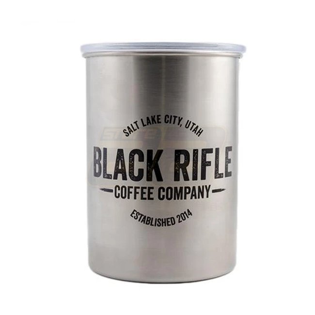 Gardez votre café Black Rifle frais et savoureux avec ce conteneur hermétique en acier inoxydable. Dimensions : 165 x 127 x 127 mm.