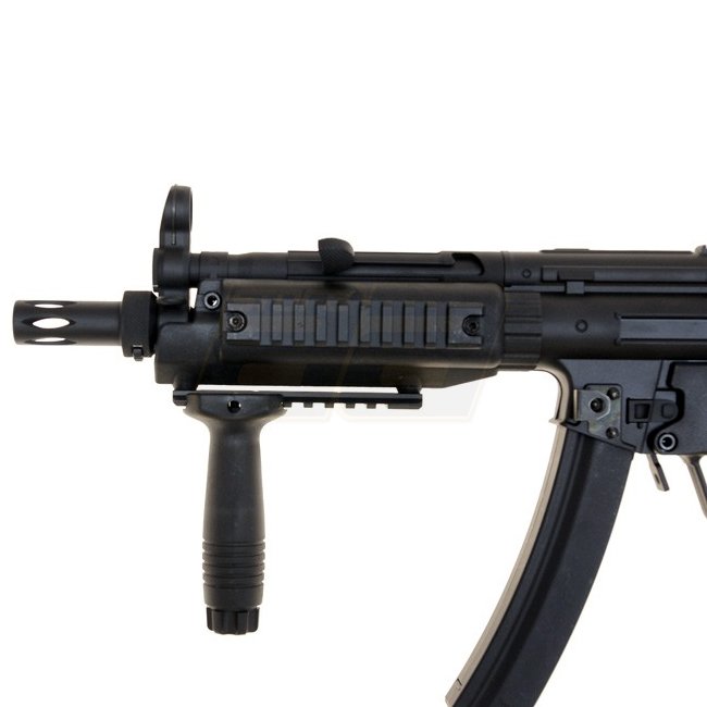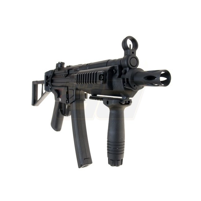 Compact mais puissant Cyma MP5 UMP AEG avec boîte de vitesses en métal, capacité de magasin de 200 coups, modes de tir semi-automatique et automatique, et hop-up réglable. Le package comprend l'arme, le magasin, le cache-flamme en métal PDW, et un garde-m