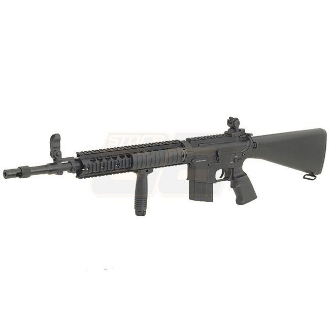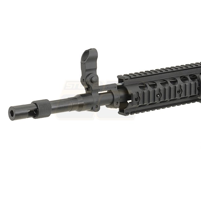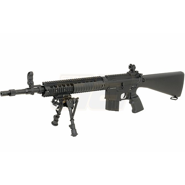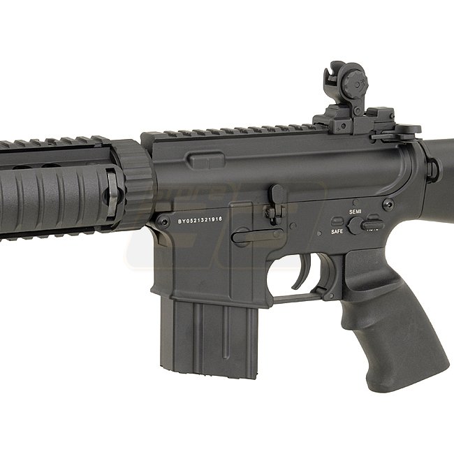 Cet AEG DBoys SPR Mk12 Mod 1 est équipé d'un boîtier en métal, d'un moteur de type long et d'un hop-up réglable. Il a une capacité de chargeur de 200 billes et tire à une vitesse de 400-420 FPS. Idéal pour les modes de tir Semi-Auto et Full Auto.