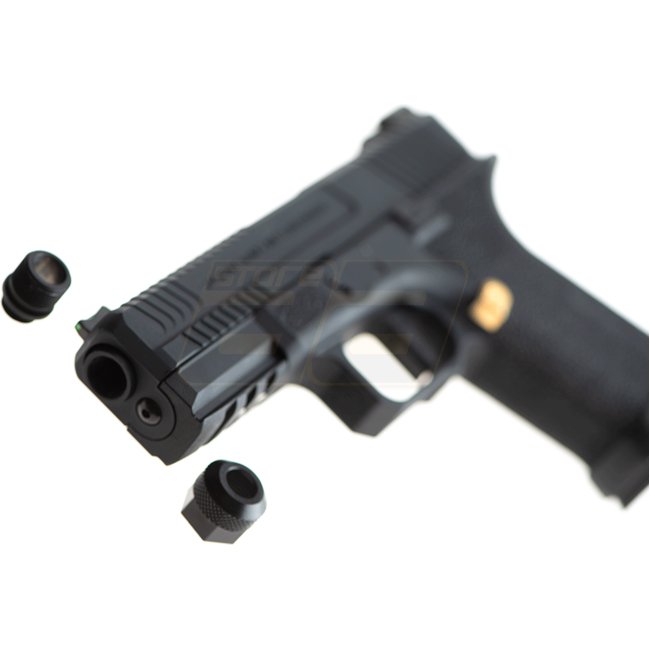 Pistolet à gaz soufflant compact avec une construction en métal/polymer, chargeur de 25 billes, longueur de 180 mm, poids de 760 g, canon interne de 82 mm, vitesse de 310-330 FPS, tir semi-automatique, hop-up réglable. Comprend le pistolet, le chargeur, a
