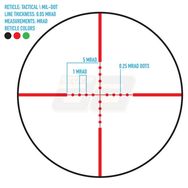Lunette Tactique Firefield avec grossissement 10-40x, réticule Mil Dot et diamètre de tube de 1 pouce. Idéale pour le tir à longue distance avec norme IPX4 et boîtier en aluminium. Montage Weaver/Picatinny. Longueur 415mm, poids 879g, avec ajustements max