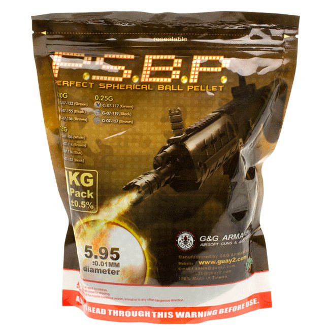Billes G&G Perfect Green de haute qualité de 0,25g pour des résultats de tir précis. Ce pack contient 4000 billes. Idéal pour les passionnés d'airsoft.