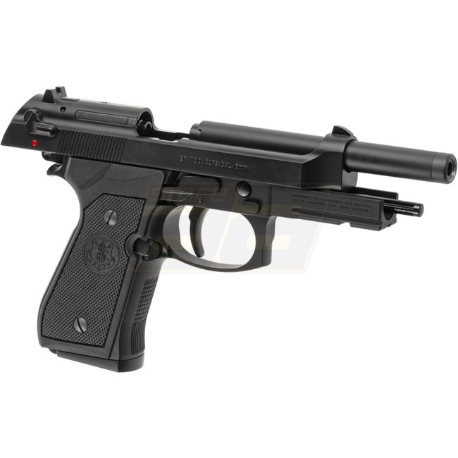 Pistolet à gaz à recul G&G GPM92 MS - Noir. Construction en métal/polymer, capacité du chargeur de 25 cartouches, longueur de 226 mm, poids de 1000 g, longueur du canon intérieur de 116 mm, vitesse à la bouche de 310-330 FPS, mode de tir semi-automatique,