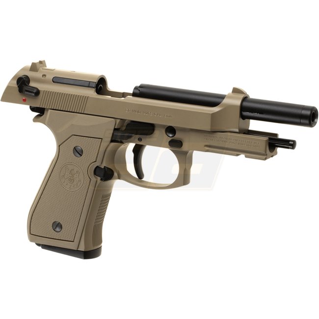 Pistolet à gaz à réarmement G&G GPM92 MS - Désert : Métal/Polymer, Chargeur de 25 coups, Longueur de 226 mm, Poids de 1000 g, Canon interne de 116 mm, 310-330 FPS, Semi-automatique, Hop Up ajustable.