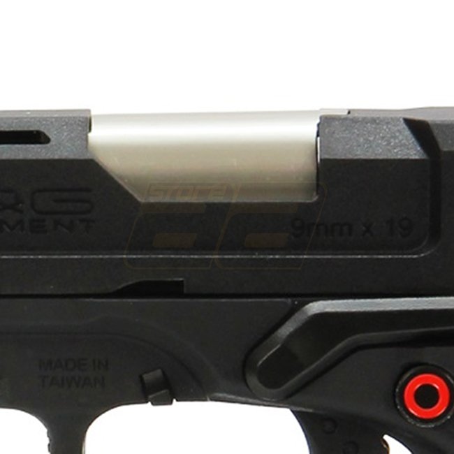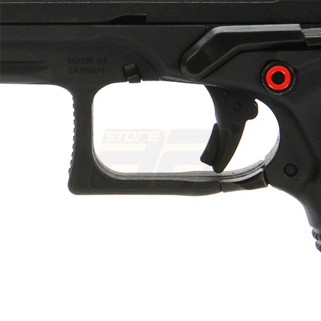 Une réplique de pistolet G&G GTP9 à gaz à culasse mobile de haute qualité, au design noir élégant, parfaite pour les passionnés d'airsoft. Poignée et glissière en polymère avec des accessoires en métal, capacité du chargeur de 22 coups, longueur de 219 mm
