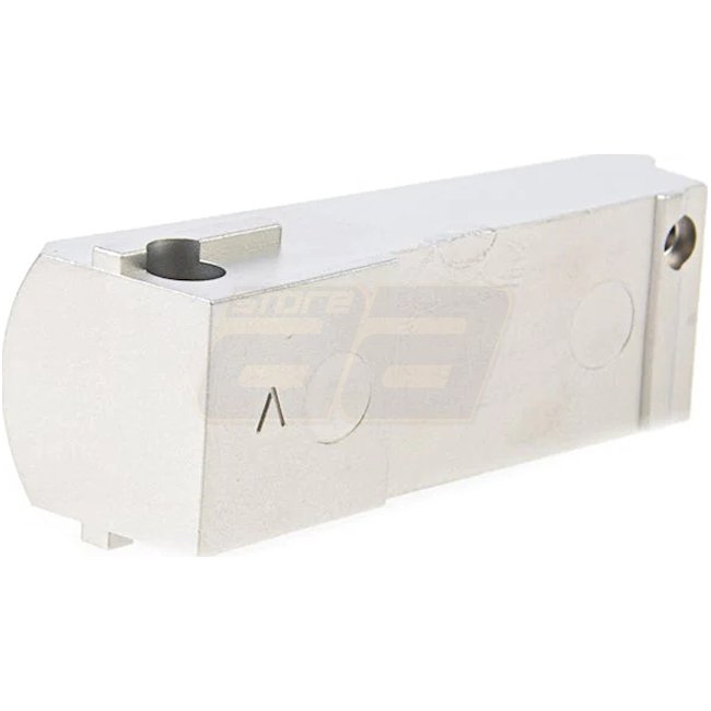 Améliorez votre pistolet à gaz blowback Marui V10 avec ce boîtier de ressort en acier inoxydable de haute qualité au fini argenté élégant de Guarder.
