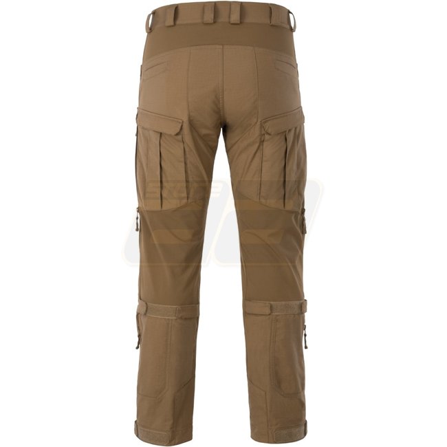 Des inserts en matériau Versastrech ont été utilisés dans les zones clés (taille, entrejambe et arrière des genoux). Il sèche rapidement et est hautement respirant. La zone des genoux est renforcée avec du tissu Cordura 500D avec des fentes pour inserts de protection. Grâce à des cordons supplémentaires situés sous le genou et en bas de jambe, le pantalon peut être facilement ajusté à la jambe.