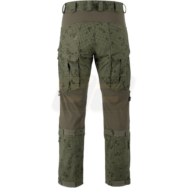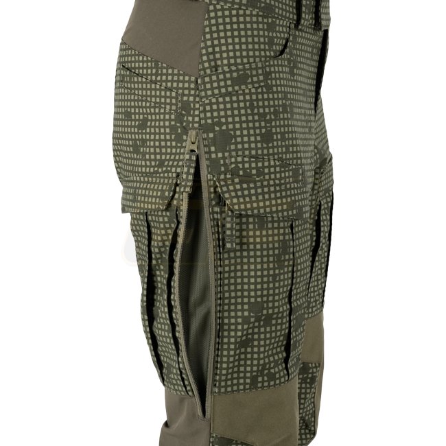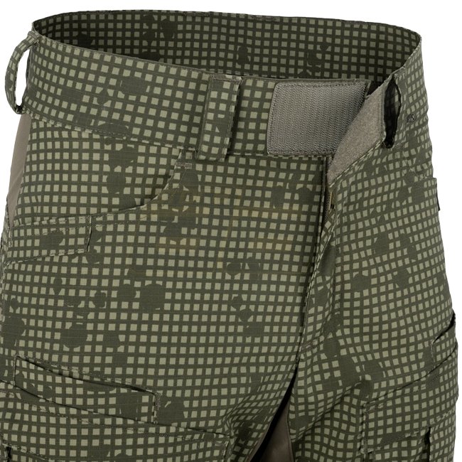 Des inserts en matériau Versastrech ont été utilisés dans les zones clés (taille, entrejambe et arrière des genoux). Il sèche rapidement et est hautement respirant. La zone des genoux est renforcée avec du tissu Cordura 500D avec des fentes pour inserts de protection. Grâce à des cordons supplémentaires situés sous le genou et en bas de jambe, le pantalon peut être facilement ajusté à la jambe.