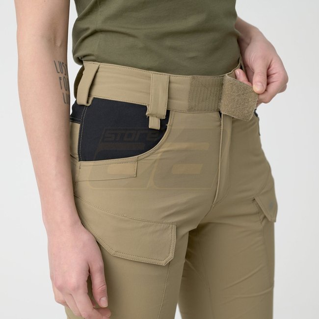 Pantalon tactique extérieur Helikon-Tex pour femmes OTP - Kaki / Noir - M - Long. Tissu VersaStretch® pour la respirabilité, extensibilité à 4 directions, coupe ergonomique. Enduit DWR, genoux renforcés avec poches de protection. 8 poches au total, partie