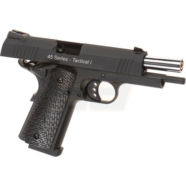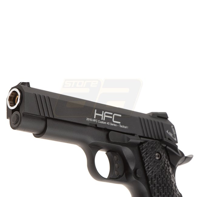 Pistolet à gaz HFC HG-171 avec réplique Blow Back - Noir : Construction en métal/polymer, chargeur de 26 billes, longueur de 205 mm, poids de 730 g, canon intérieur de 96 mm, vitesse de 290-310 FPS, mode de tir semi-automatique, hop up réglable. Comprend