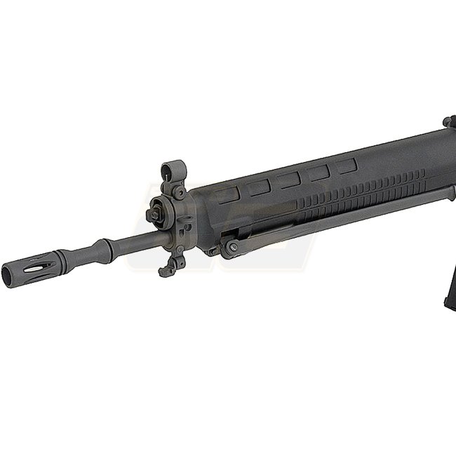 Jing Gong SG550 AEG est un fusil airsoft fiable avec une construction en plastique ABS durable, des modes de tir semi-automatiques et automatiques, et un système hop-up réglable. Il est doté d'un boîtier de vitesses : Version 3, d'un moteur de type court,