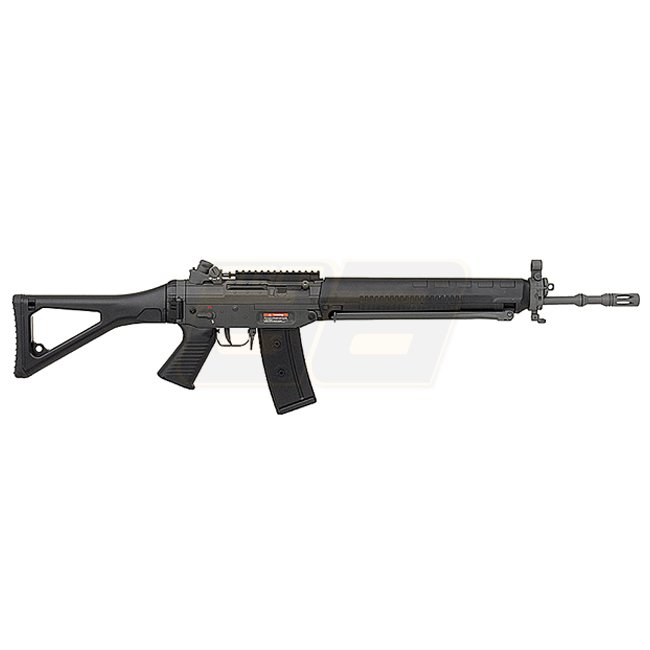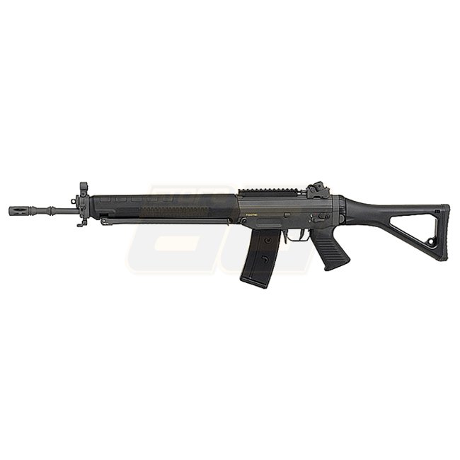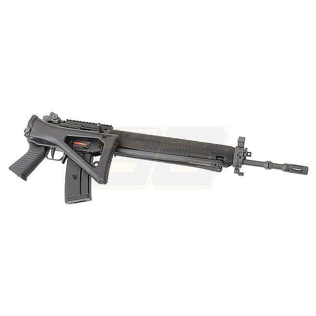 Le Jing Gong SG550 AEG Full Metal Blowback présente une construction en métal durable avec des accessoires en plastique ABS, une capacité de chargeur de 370 billes et une portée de tir polyvalente de 48,02 à 50,76 m. Convient aux modes Semi-Automatique et