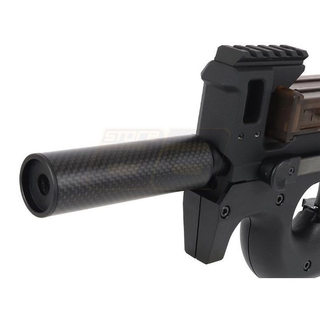 Le silencieux Laylax MODE-2 en fibre de carbone FAT est un accessoire élégant et durable de 14mm au pas inversé mesurant 100mm de longueur. La finition noire lui confère un look moderne et raffiné, parfait pour améliorer votre réplique d'airsoft.