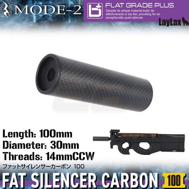 Laylax MODE-2 Carbon Fiber FAT Silencer 14mm CCW 100mm - Black