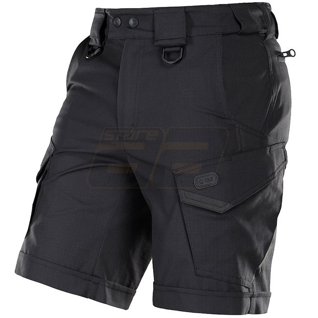 Shorts Aggressor confortables et durables de M-Tac en noir. Légers, imperméables et élégants, parfaits pour l'entraînement, le tir, le travail ou les voyages. 64 % coton, 32 % polyester, 4 % élasthanne. Dotés de larges poches renforcées, conçues pour des