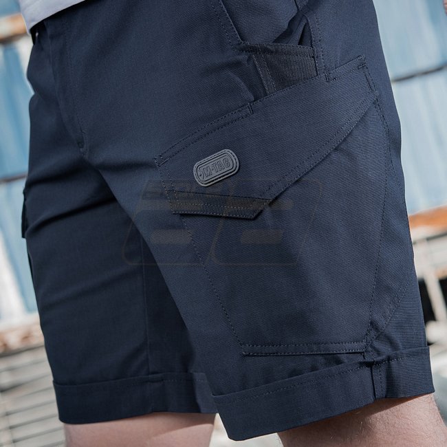 Shorts M-Tac Aggressor de haute qualité en bleu marine foncé taille XS. Matériau léger, résistant à l'eau et à la saleté avec des poches larges et confortables. Parfait pour l'entraînement, le tir, le travail et les voyages. Fabriqué à partir de 64 % de c