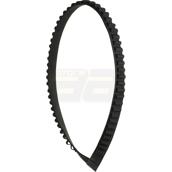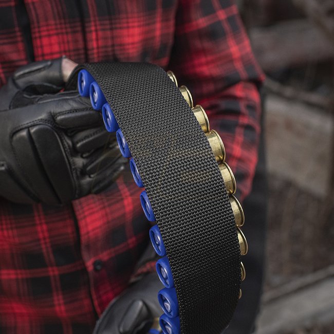 Ce modèle contient 55 cartouches de calibre 12 ou 16. La base de la cartouchière est en double strope pour la maintenir rigide et l'empêcher de se tordre lorsqu'elle est chargée de munitions. La surface intérieure est agréable au toucher et ne s'accroche pas à vos vêtements. Les coquilles sont fixées avec une bande élastique pour s'assurer qu'elles sont maintenues serrées et qu'elles sont toujours faciles à retirer de la bandoulière.