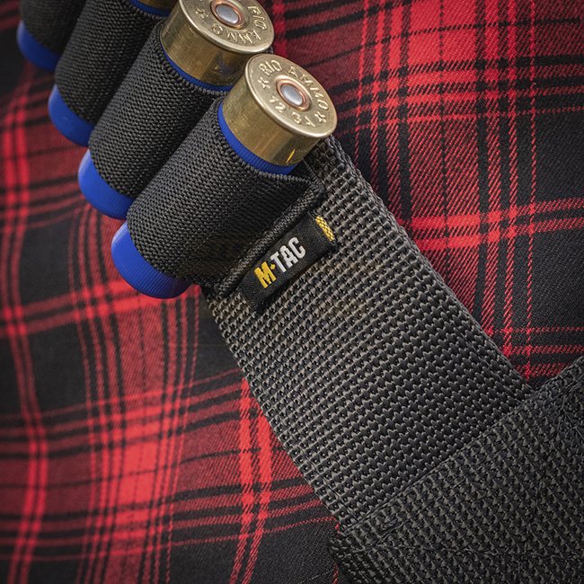 M-Tac Bandolier Elite - Noir : Bandolier pratique pour diverses disciplines de tir, contient 55 cartouches de calibre 12 ou 16. Fabriqué sur une base de double sangle pour la rigidité, la surface intérieure est lisse, les cartouches sont sécurisées avec u