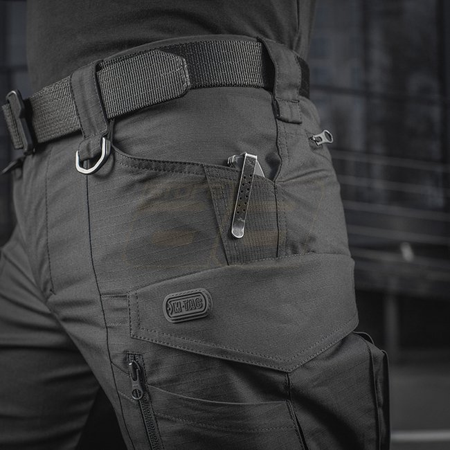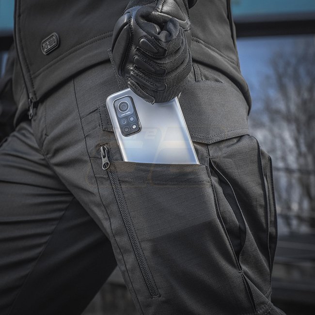 Les caractéristiques de conception du pantalon Conquistador Flex sont un insert élastique à la taille et près des poches latérales, grâce auquel le pantalon ne vous limite pas lorsque vous vous penchez ou vous penchez. Ils n'entravent pas la liberté de mouvement et vous pouvez les porter aussi bien comme vêtements tactiques que comme vêtements de tous les jours. Le pantalon a une fermeture éclair et un bouton, il est également équipé de passants pour une ceinture jusqu'à 5,5 cm de large. Deux anneaux en D sont cousus à l'avant pour attacher divers équipements. Le pantalon Conquistador Flex est équipé d'un grand nombre de poches, à la fois utilitaires et spéciales : il y a huit poches au total. Les poches latérales standard sont équipées d'un renfort en bas - pour attacher un clip de couteau ou une lampe de poche au bord de la poche. La poche cargo complexe est équipée d'une poche plaquée supplémentaire, qui peut accueillir un chargeur M4 ou AK. La poche cargo elle-même est assez spacieuse. Il a deux plis, grâce auxquels sa taille peut être augmentée pour transporter des objets volumineux. La poche cargo est fermée par un rabat velcro asymétrique à ouverture rapide. De plus, la poche cargo est équipée d'une deuxième entrée zippée, ce qui vous permet d'accéder à son contenu depuis une position assise.