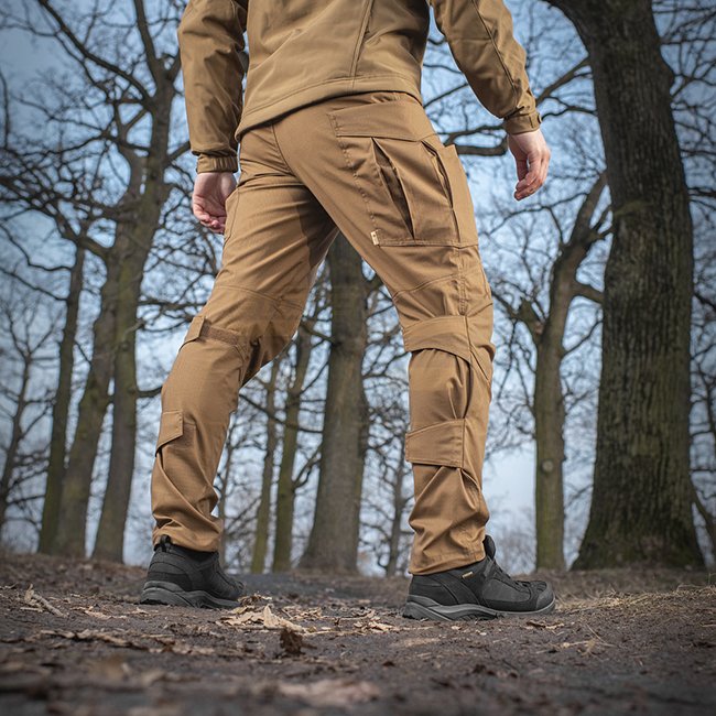 Pantalons tactiques flex M-Tac Conquistador Gen.I - Coyote - 38/32, durables et polyvalents, fabriqués en PolyCotton Ripstop Flex, conçus pour le confort et le mouvement. Les caractéristiques comprennent une imprégnation Teflon résistante à l'eau et aux t
