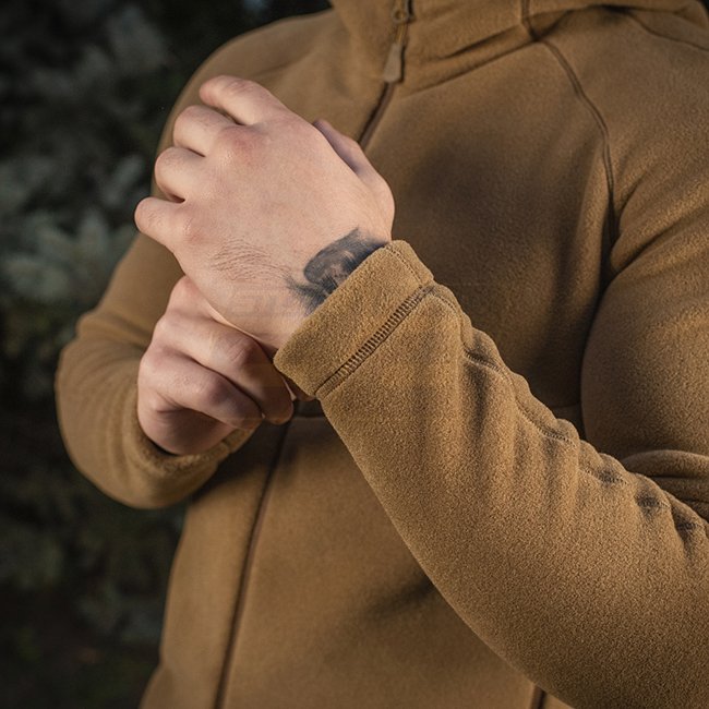 Le sweat à capuche M-Tac Sprint en polaire Polartec en Coyote est un raglan élégant pour légèreté et confort au quotidien.